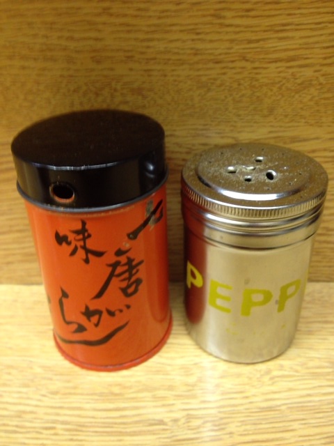 卓上調味料の一味唐辛子と黒胡椒