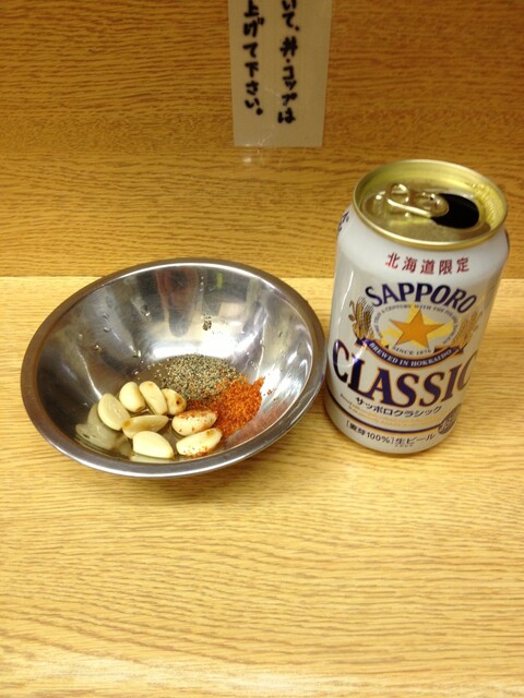 醤油漬けにんにくとSAPPOROクラシックラガー 350円