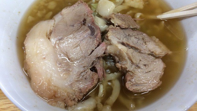 麺太路線に回帰した麺を堪能し、厚みが凄すぎるブタをスープに沈めて、最後にいただき完食。