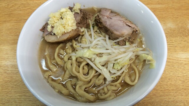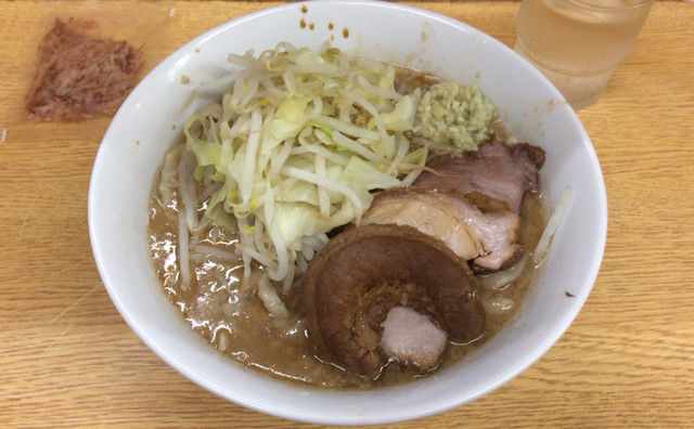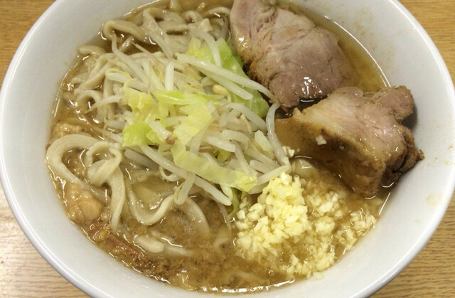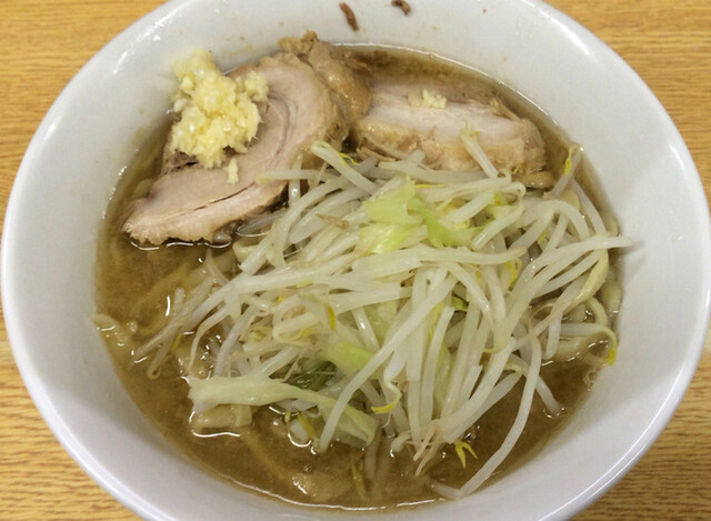 ラーメン 700円 麺半分・ヤサイ少なめ・ニンニク・漬けニンニクをオン