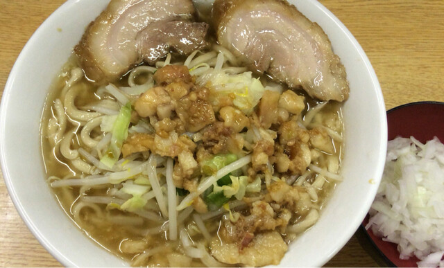 この日は5分強の茹で時間な麺で、荒れ狂う旨さ。スープは言うまでもなく濃厚。