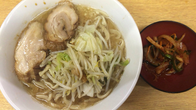 ラーメン 700円 麺半分・ヤサイ少なめ・ニンニク・漬けにんくく3つオン