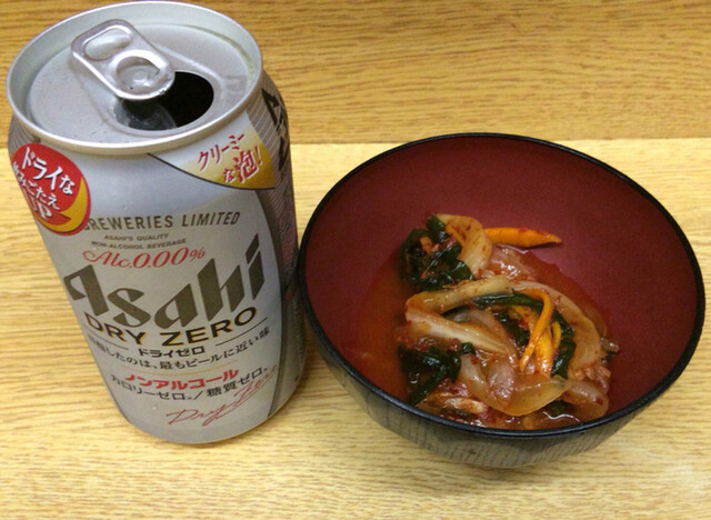 ノンアルコールビール200円と玉ねぎキムチ100円