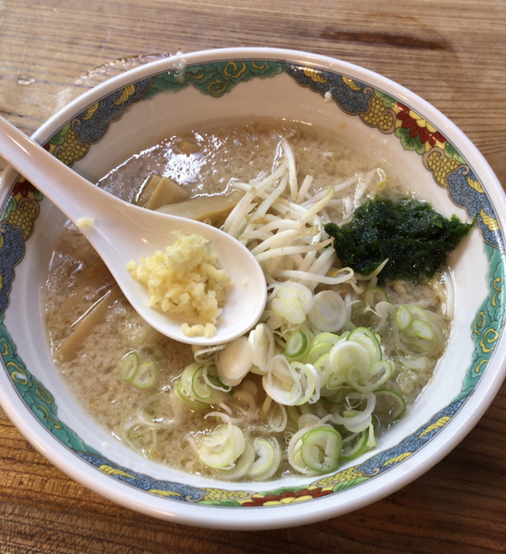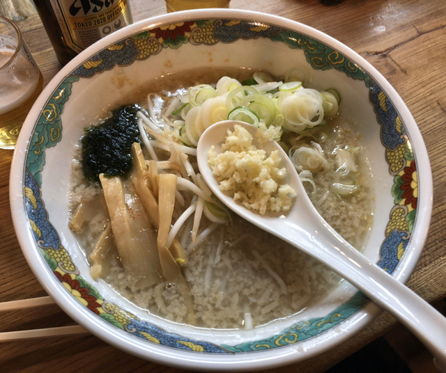 ラーメン 麺半分 ニンニクありアブラ多めで