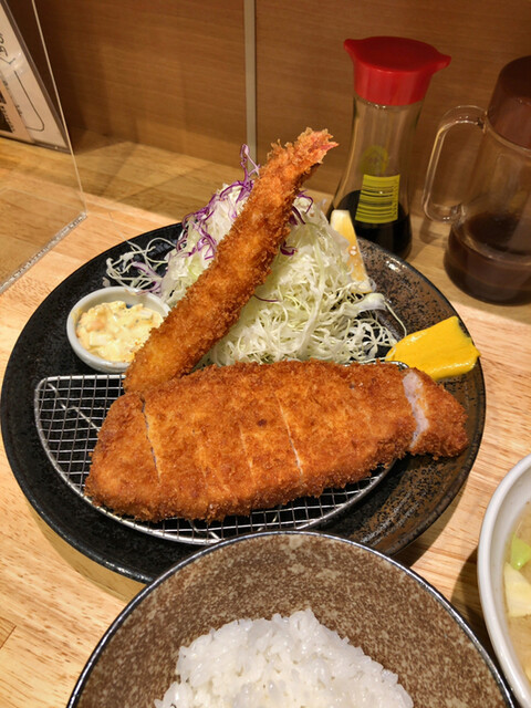 ロースかつ定食 800円 エビフライ 300円