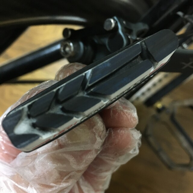 試しにシューのトーイン無くしてバランス調整までしてみたモンの(4/17)、葡萄坂下りで強め握り込み時にまたフロントブレーキ盛大鳴き