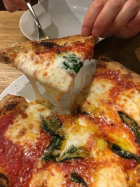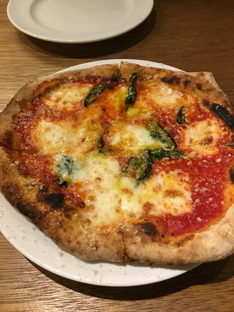 このお店のらしく、一見普通のナポリタイプのマルゲリータ。コース用だからか、盤は小さめ。今回のはかなりしっかりめに火が通ってる