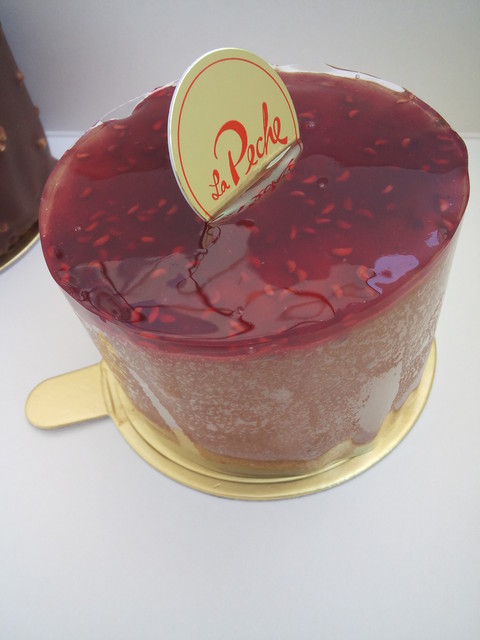 濃厚なチョコのムースの上にイチゴなんだかラズベリーなんだかの赤系ベリーのソースがトロン