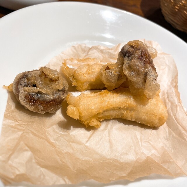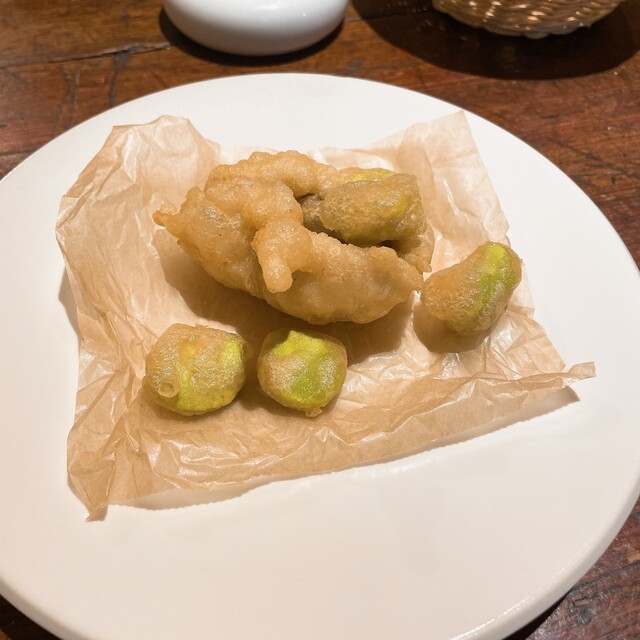 メヒカリ、山菜の苦味と旨みが詰まった一品。