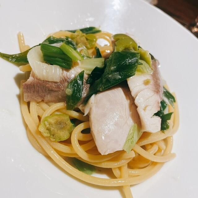 スパゲトーニ 寒ブリ 葉玉ねぎ