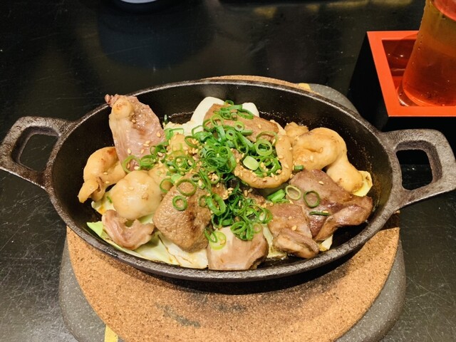 地鶏の弾力があり、たまり醤油とニンニクの香りレモンの酸で美味しい。