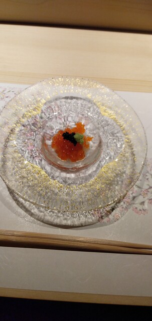 京橋でお寿司を~。駅からスグのディープなエリア。2Fのお店は落ち着いた別世界です。カウンターに座って職人さんの手さばきと共に堪能できます。ヒラメ、金目鯛で質のすばらしさ、赤身ヅケと煮穴子に技の妙が知れます。煮穴子、形ありながら実在を感じさせない、それほどの軽さ儚さ、食せば香ばし余韻残してスッと退いていく。瞠目いたしました。小丼・茶碗蒸しで艶を感じさせます。ホタルイカ、春ですねえ。焼物まで完璧で隙の無いお店。黒潮海閤さん、素晴らしいです。