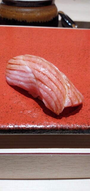 中州のビル2Fに上がり、暖簾を潜れば木目多様の別世界。目利き遺憾なく発揮の極上ネタを、超絶技巧で最上に仕上げたお寿司がいただけます。江戸前の基本にしっかり裏打ちされた鮪・穴子、贅沢に極上を掛け合わせた雲丹ノドグロ小丼、博多オマージュな水炊き仕上げ茶碗蒸し・玉は なんとカステラだったり等々、本流を外さないながらも遊び心あふれる要素も取り入れられて驚きと感動の食体験が味わえます。車海老は、握る直前で殻剥きされたりと、味の追求に妥協されない姿勢に瞠目します。博多 鮨 まつもとさん、全力でお奨めいたします。