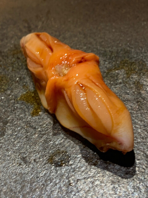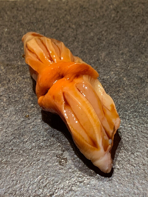 ここからシャリはロゼ。今回ロゼの米をさらに貝に合わせるように改良したらしい。山口産の肉厚な赤貝。まさに旬の美味しさ。