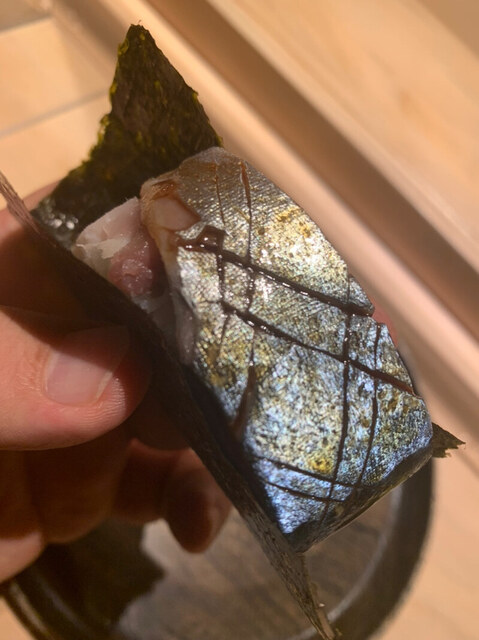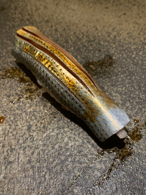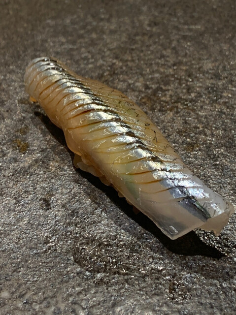サヨリ。隣に座った女性はこれが好きだったらしい。私にとっては普通に美味しいネタ。