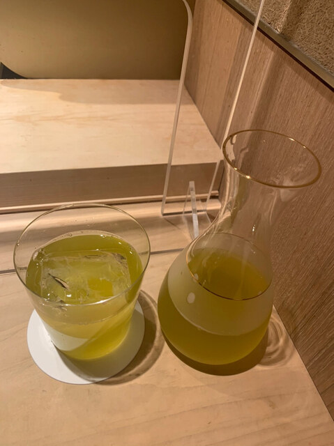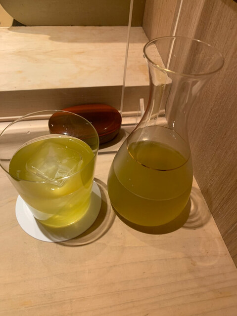 緑茶。常連のいいところは頼まなくても阿吽の呼吸でサービスされる事。