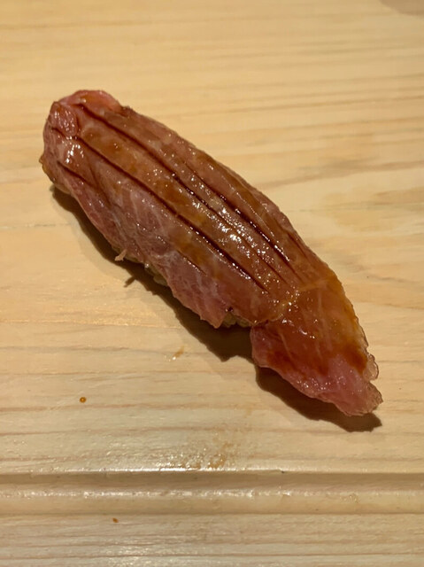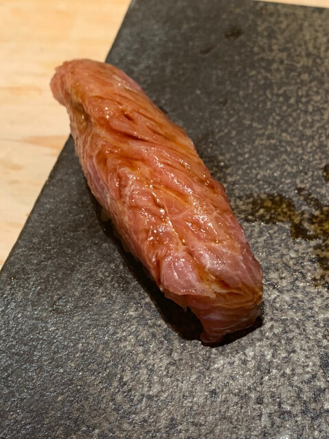 この日の究極。大間18日熟成大トロ蛇腹。マグロの最後にこんな究極の1貫を食べることが出来て本当に幸せだ。