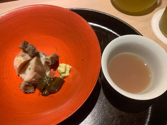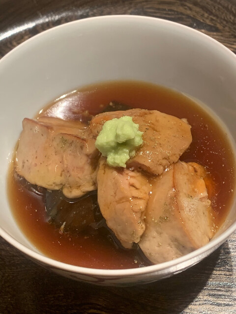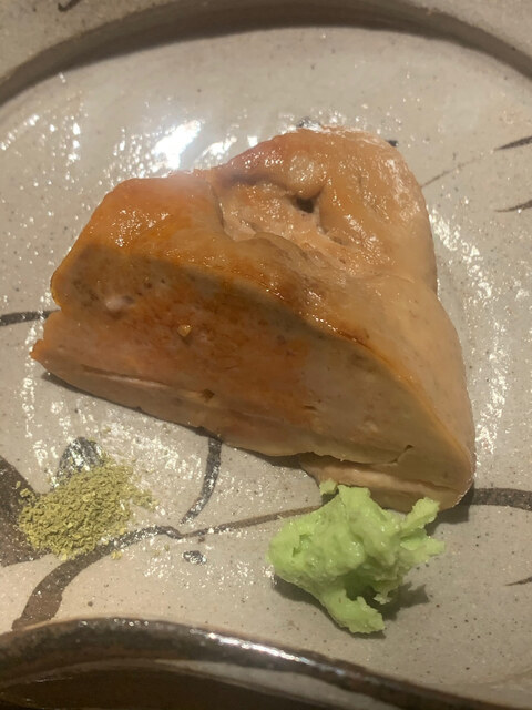 鮟肝とナス。鮟肝はねっとりして美味い。海のフォアグラ。