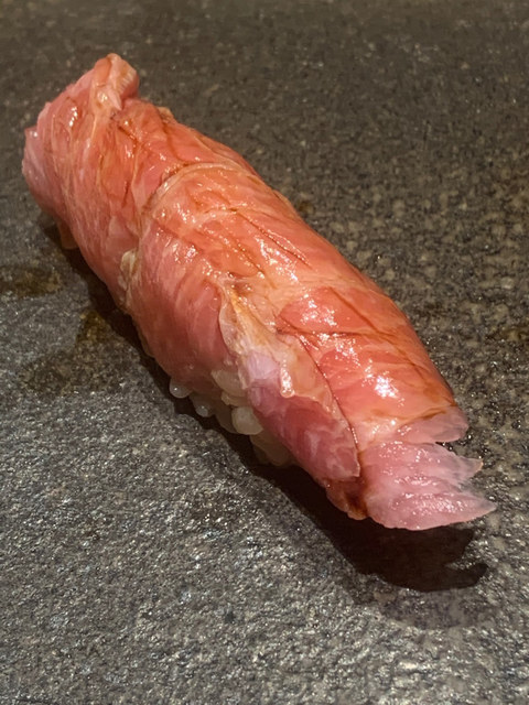 大畑赤身。酸味もあるが赤身でもうっすら脂が、そして深みのある旨味。
