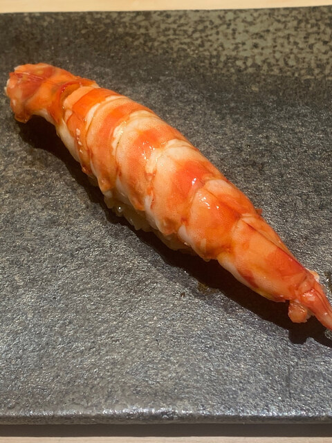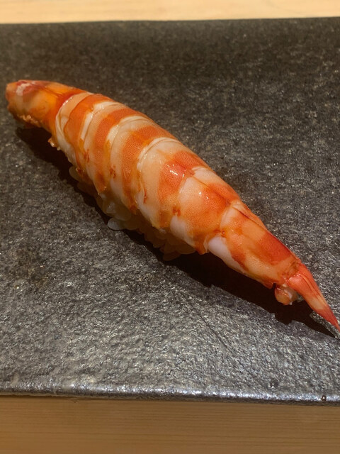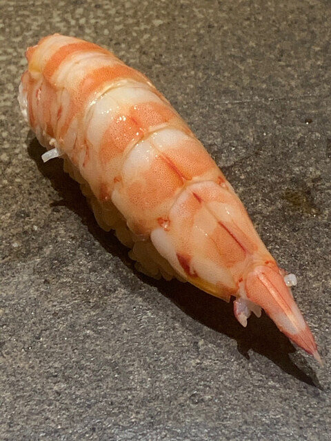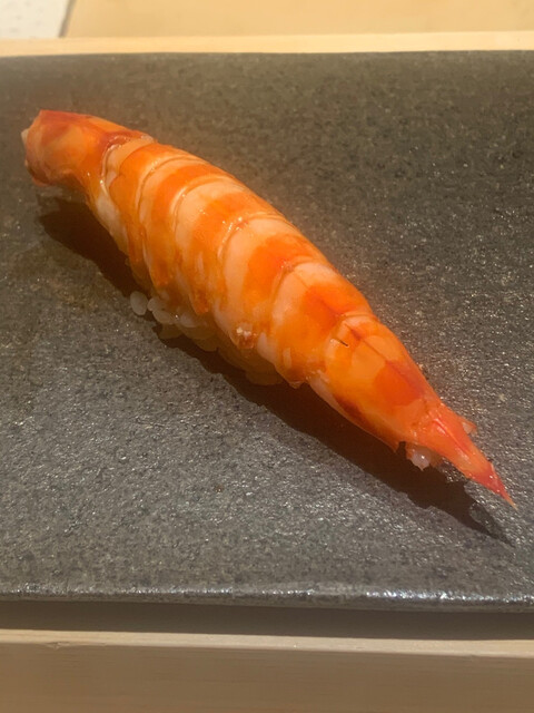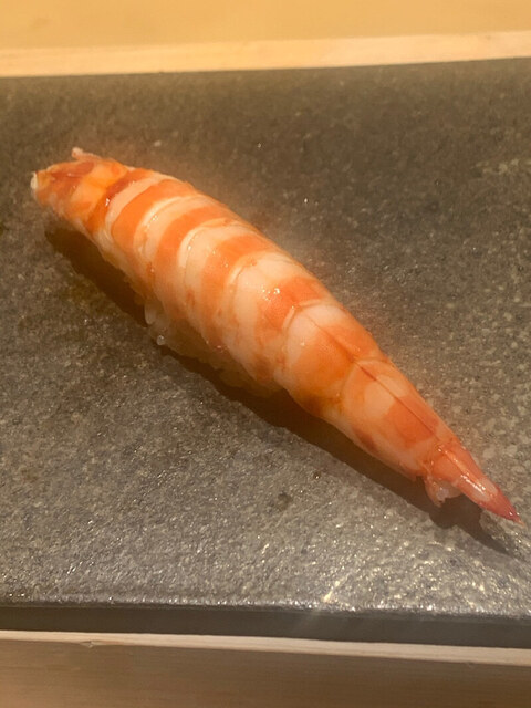 天然の車エビ。この日誕生日だった20歳の女性はこれを6貫以上食べていた。若いって素晴らしい。ただ高級寿司を食べる楽しみは30歳以降にした方がいいかも。人生は意外と長い。