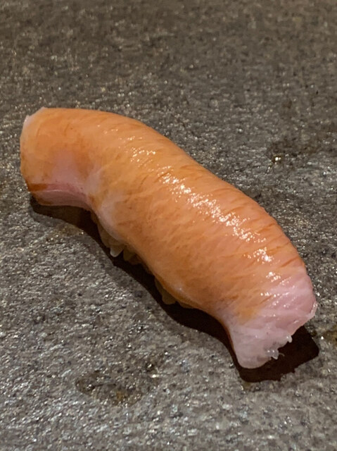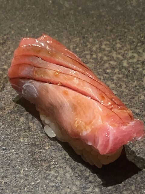 塩釜トロ。ここからシャリは赤。普通の鮨店で出てきたら涙ぐむくらいの美味しさ。