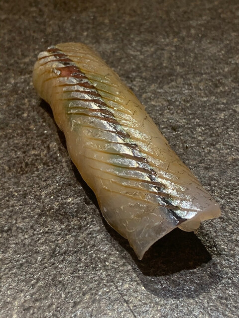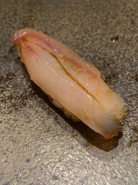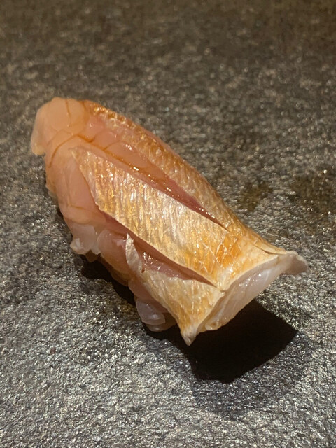ここから握りへ。瞬間昆布締めの紅葉鯛。裏旬で脂が乗っており香りも良く、1貫目から唸る美味しさ。