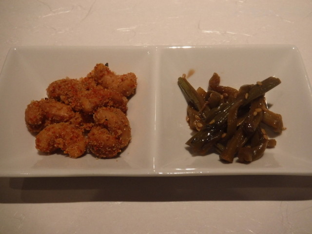 付きだしの山クラゲのにんにく醤油とカシュ—ナッツの