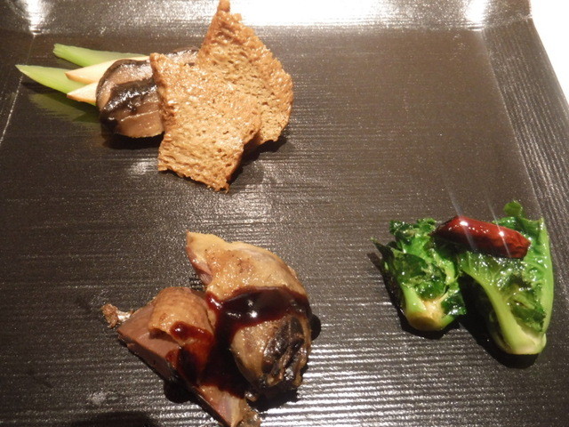 湯葉の北京ダック仕立てと牡蠣のオーブン焼き。