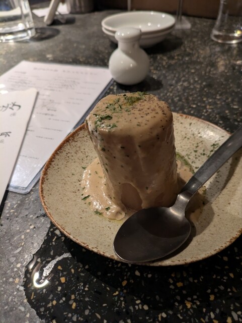 注文したのはポルチーニ大根780円。大根の煮物にポルチーニ茸のソースがかかっているものでめちゃくちゃおいしかったです。あと、刺し身盛り1200円。これもいいところを選んで切ってくれているので柔らかくてめちゃくちゃ美味しかったですし炙り物の火加減も絶妙でした。特においしかったのは銀鱈西京焼き1500円。脂がしっかりのっている銀鱈をしっかり焼いていて身はホクホクでこんなに美味しい焼き魚を食べたのは初めてってくらいおいしかったです。