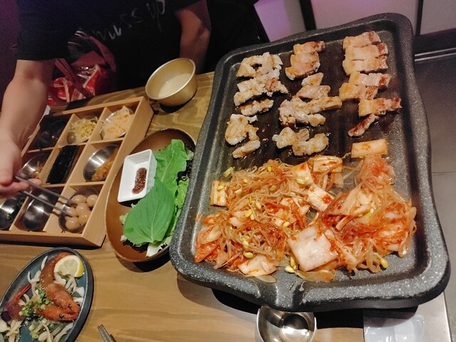予約で行きました。個室を用意してもらい誕生日だったのでサプライズのミュージックとケーキをプレゼントしてもらいました。前菜がおかわり自由なのですが種類が豊富。飲み放題プランにしましたがマッコリの種類もありますしリーズナブルだと思います。タコの踊り食いがお目当てだったのですがまさかの品切れで残念でした。ポッサム、サムギョプサル、カンジャンセウ、どれも美味しかったです。
