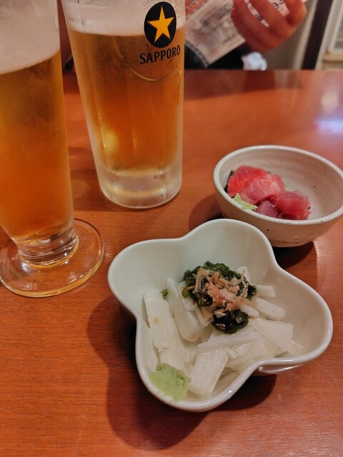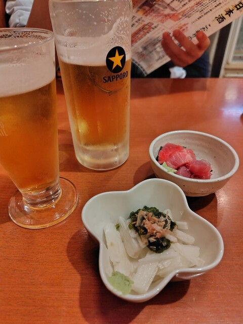 次の日が祝日で心配しましたが予約なしで待つことなく入店できました。ちょい飲みセットはお得だと思います。メニューが豊富で納豆揚げ、もつ煮、焼き鳥、カマ、全部美味しかったです。日本酒の種類も多く美味しかったです。