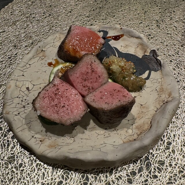 シャトーブリアン、しまらっきょ、たまねぎ、ねぎ、雲丹ラー油