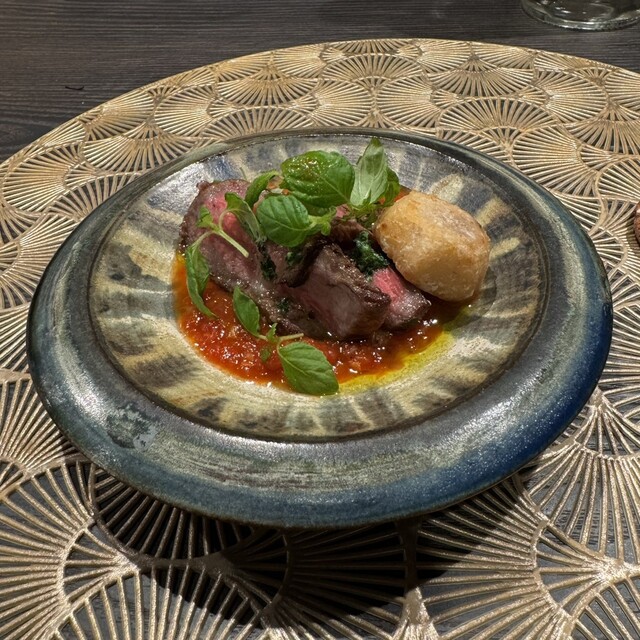 ローストビーフ ローズマリー タイム、みょうが、わさび フォンドボー サマートリュフ