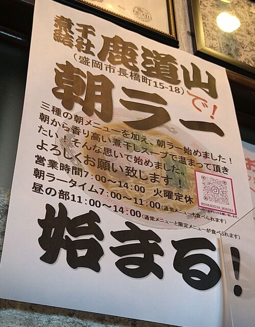 朝ラーメニューの【朝煮干し】が旨い!