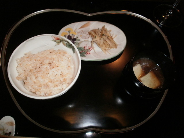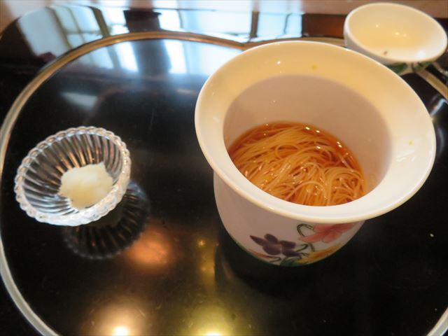 ソウメンになる時に箸を新しくするなど気配りを感じるが、破った後の箸袋をいつまでも放置するなど、「マニュアルのレヴェルが高いのであって、スタッフが心を込めてサーヴィスしているのではない」と感じた。