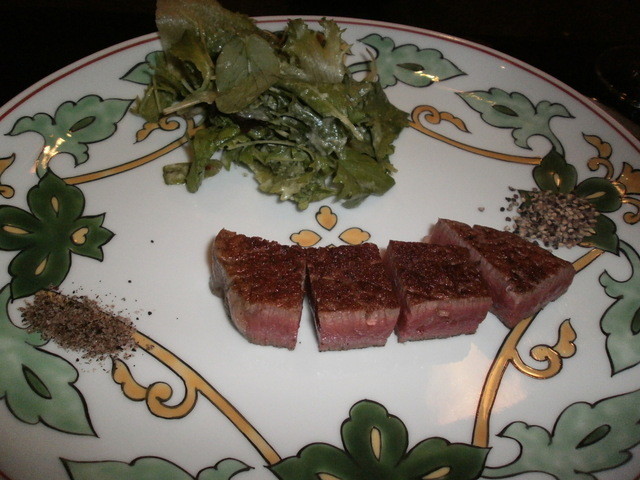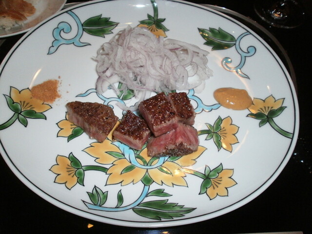 連れは(鮑とステーキの25300円(税込・サ別)コースで)既にステーキに入る処だった。