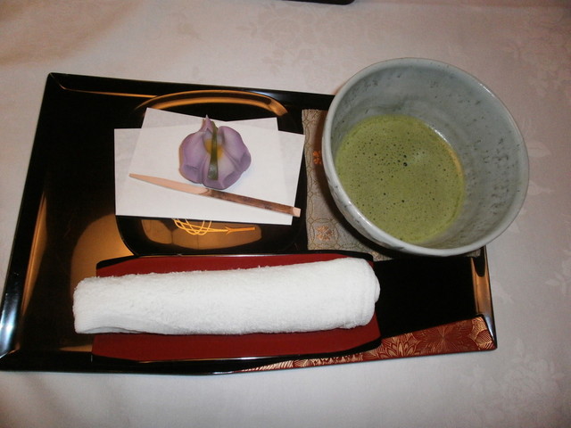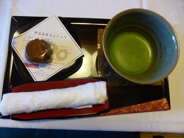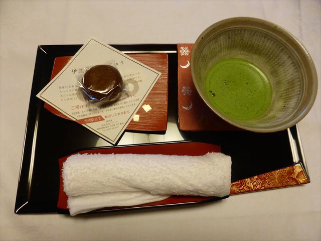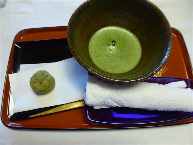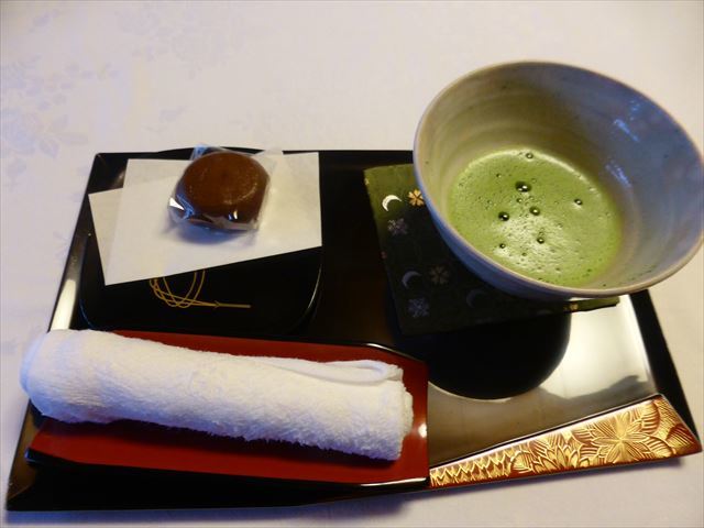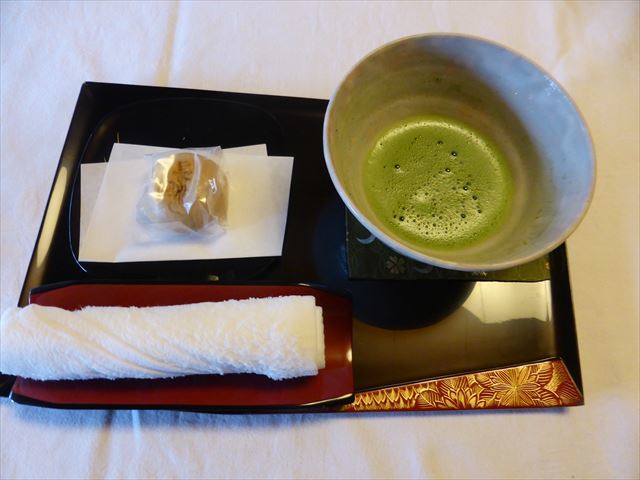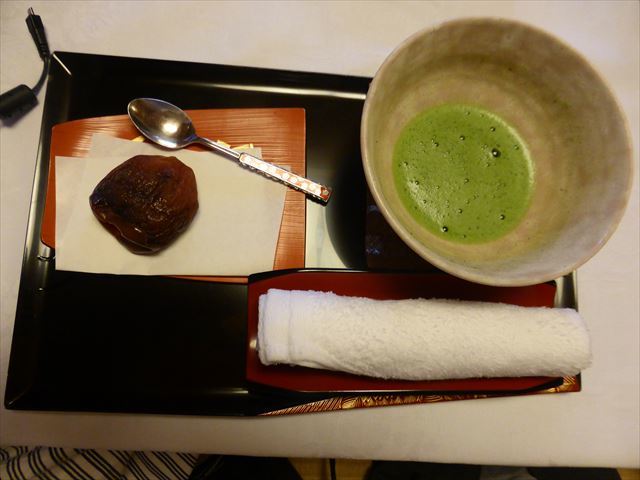 抹茶とお饅頭が準備されていたが、直ぐに食事なので、抹茶だけ頂いてお饅頭は取って置く。