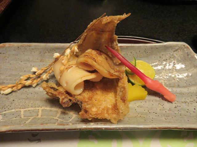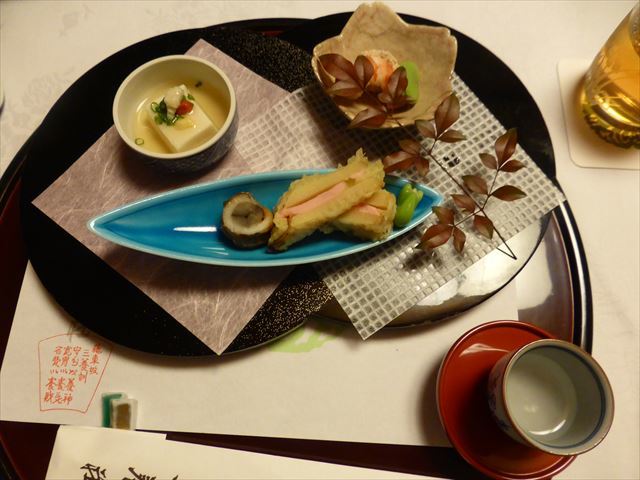 △+ 揚物 鮎魚女白扇揚げ、車海老、野菜、美味出汁