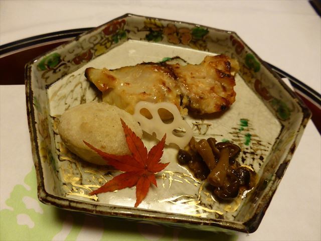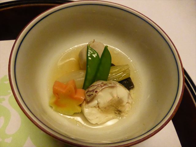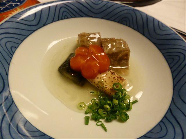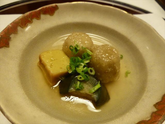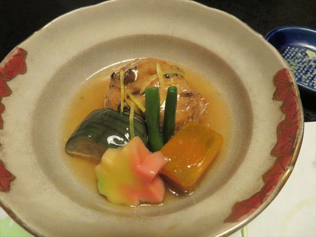 △□ 煮物 穴子飛竜頭、南瓜・茄子・紅葉麩、青味・針柚子
