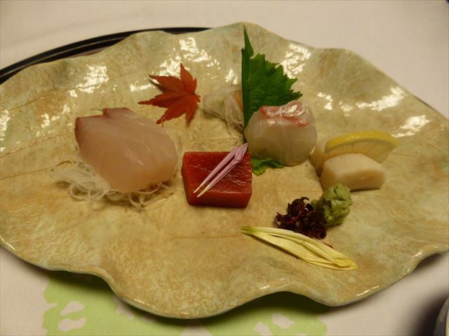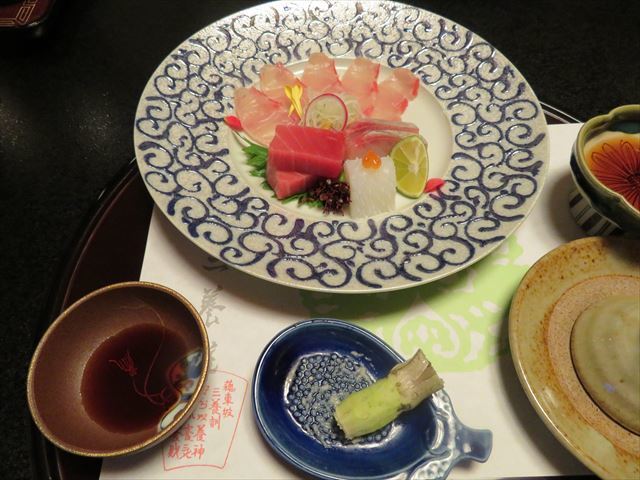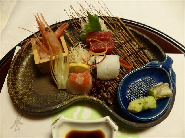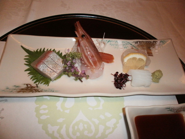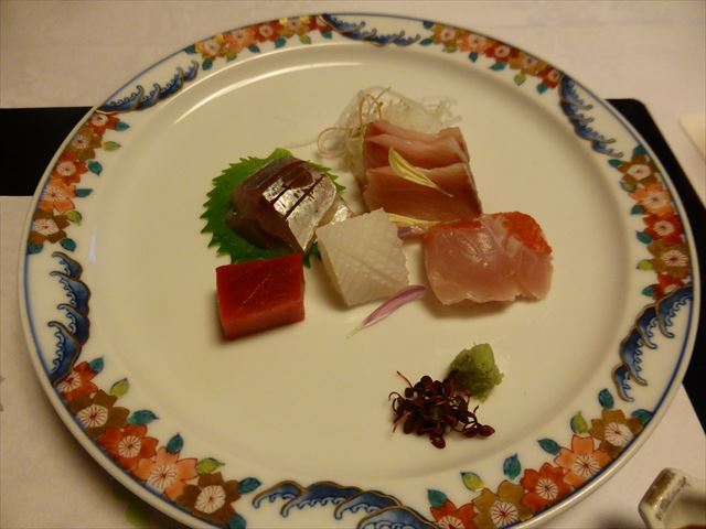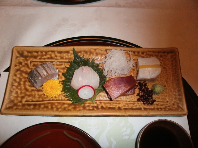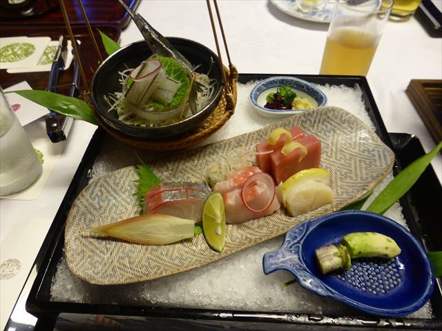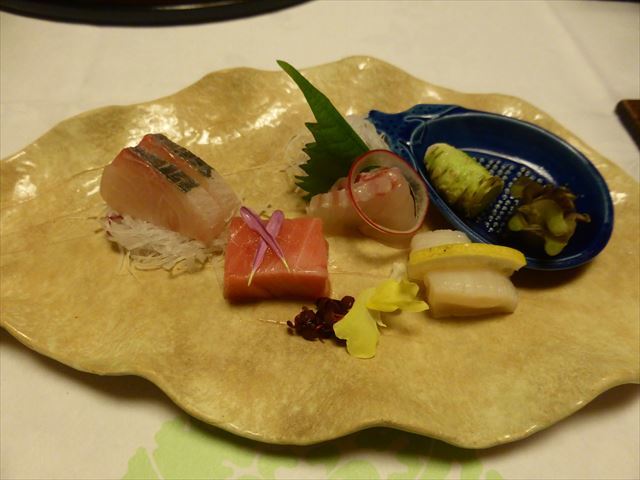 △(□) お造り 金目、鮪、間八、アオリイカ;天城産生山葵