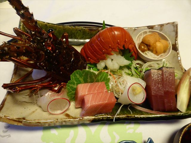 △□ 向 勘八、牡丹海老。目鯛、アオリイカ