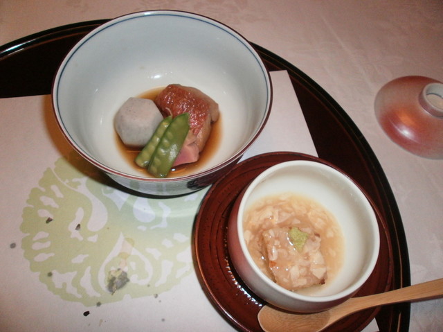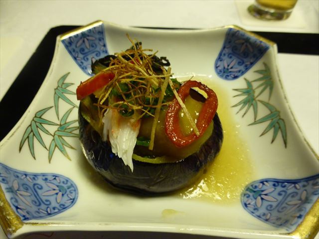 △□ 箸付 翡翠茄子、合鴨ロース、辛子餡