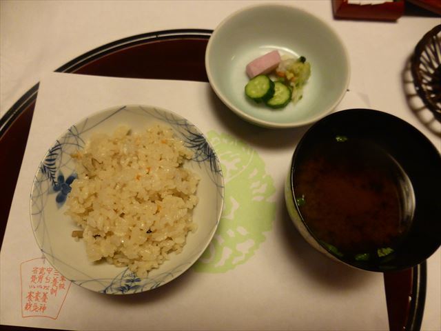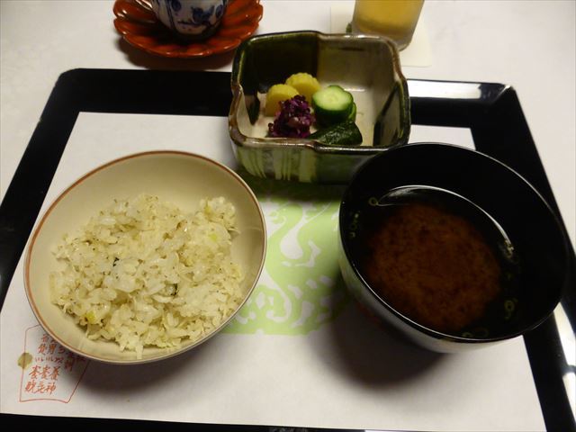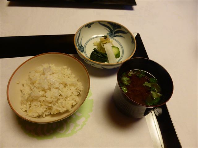 御飯、味噌汁、香の物。