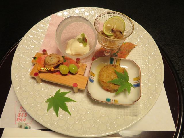 △+ 箸付 蟹養老寄せ、クコの実、美味出汁