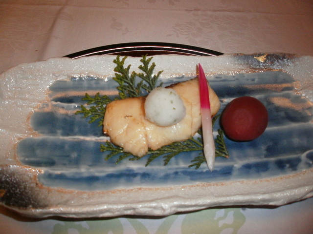 △ 焼肴 鰆雲丹玉子焼、杏子・はじかみ