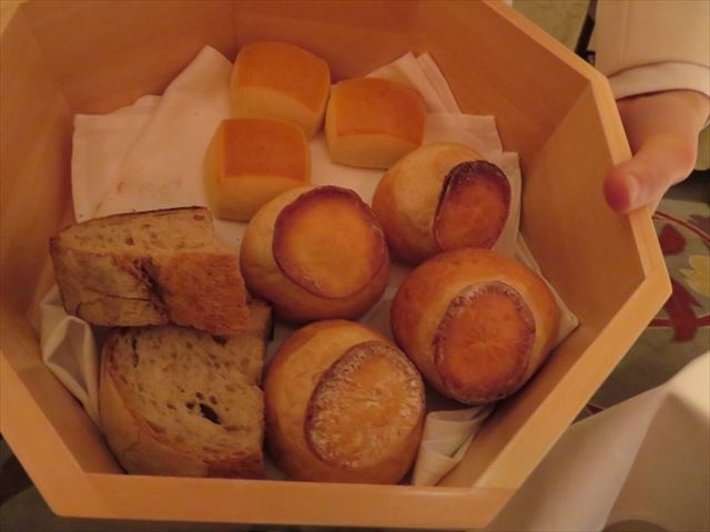 ウェイトレスがパンを持って来たのだが、私が一番好きなイギリスパンが無くなってしまった!?(委託のパン屋が変わったようだ)