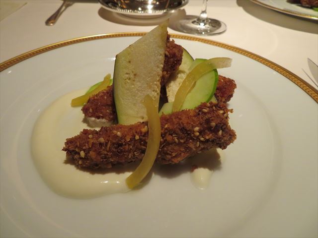 :滑らかにして爽やか。蜂蜜のジュレを付けたり・付けなかったり、交互に味の変化を楽しむ。