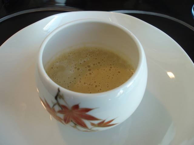 私が必ず鮑を食べる事と、鮑の入った「鮑とうかい特選牛コース18900円」のオードブルにフォアグラローストが有る事から、サッとこういう会話になった。こういった点(会話)もタイムリーで楽しい。