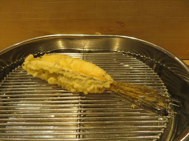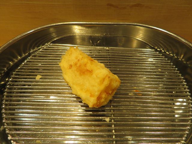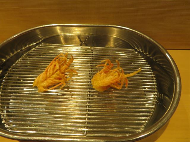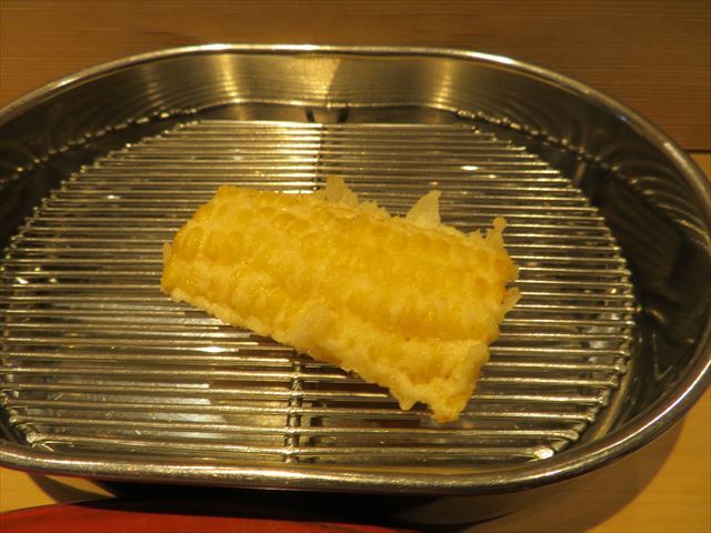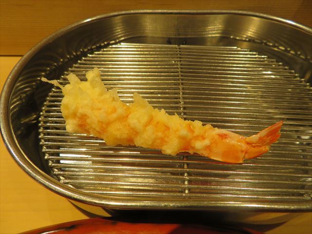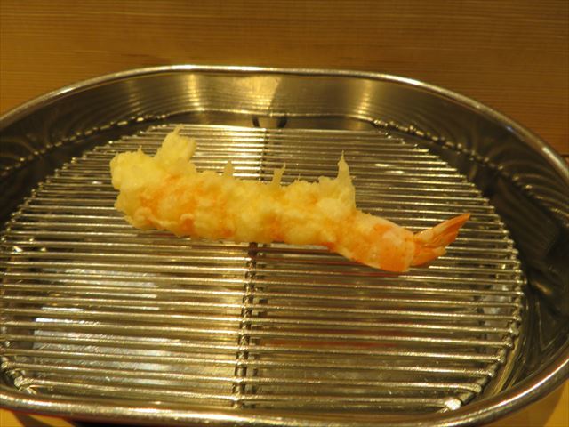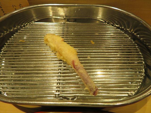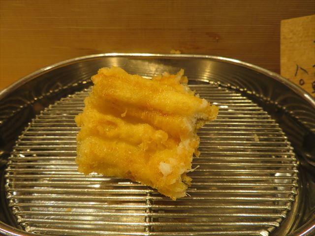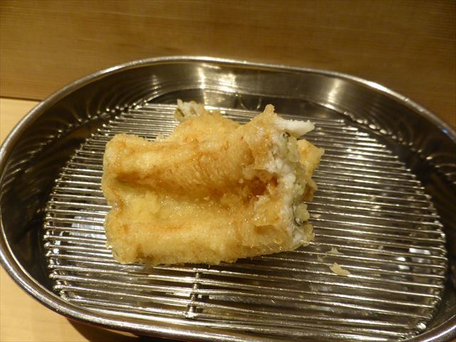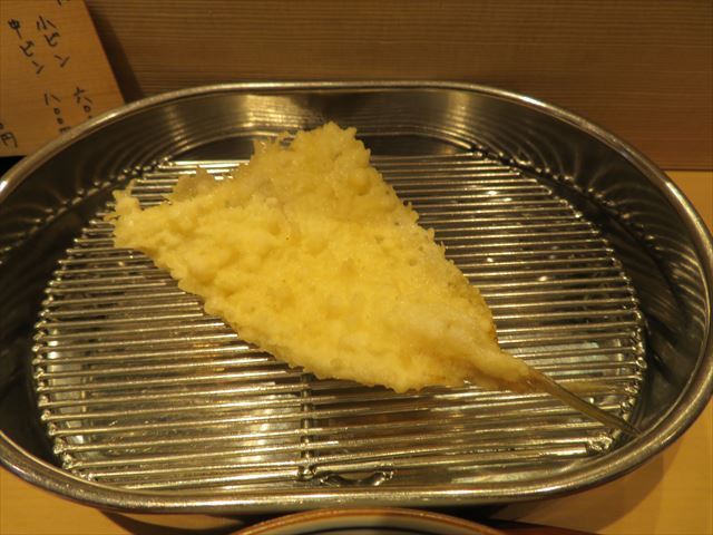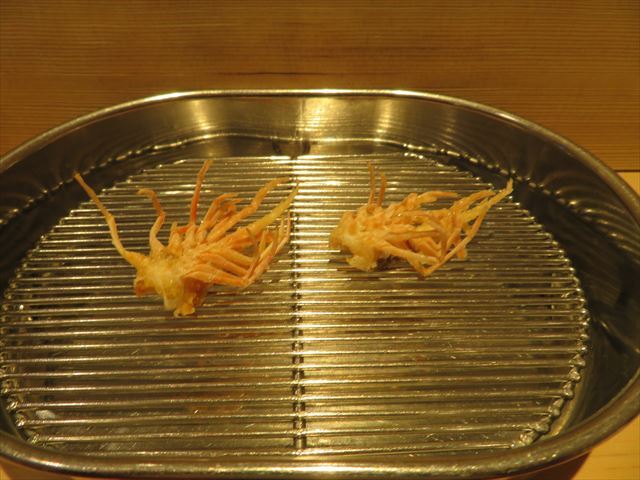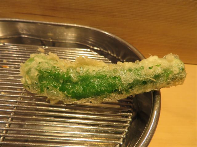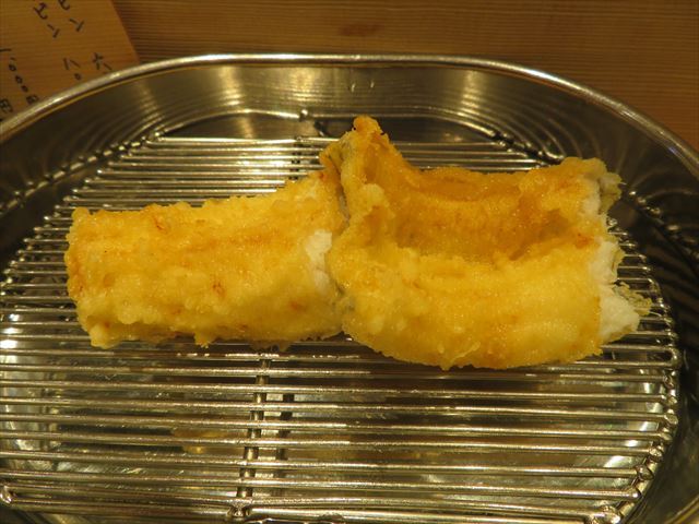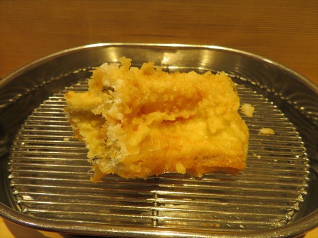 :天麩羅カウンターで定番だが、今回の物は特に良い揚げ具合。