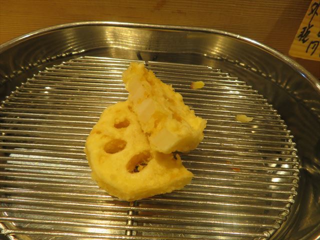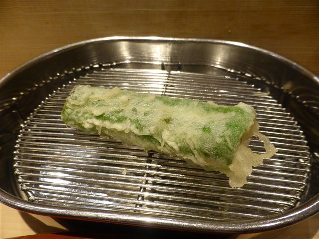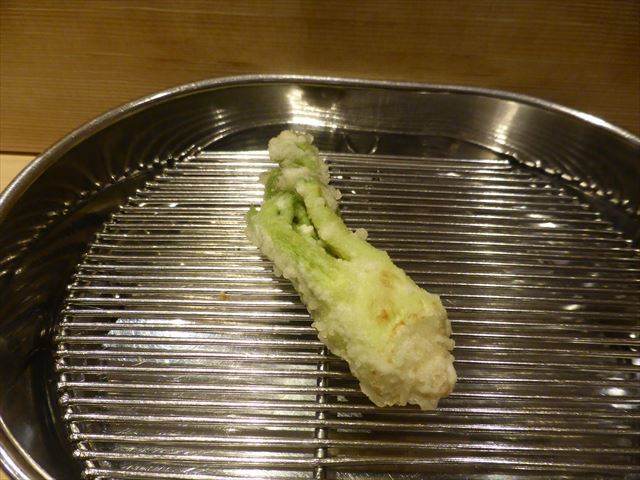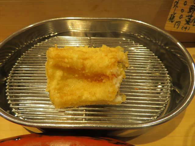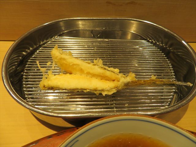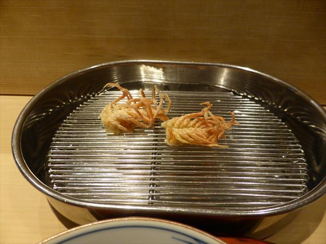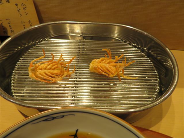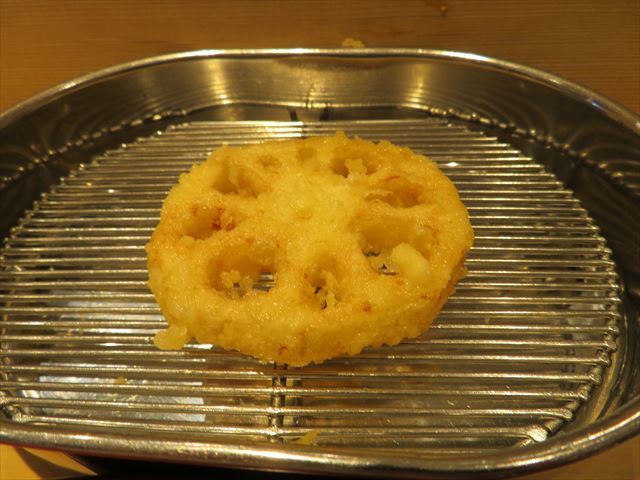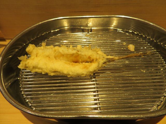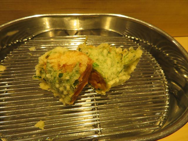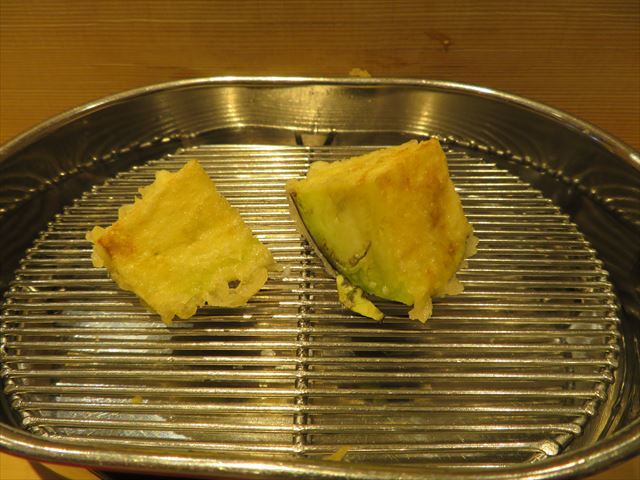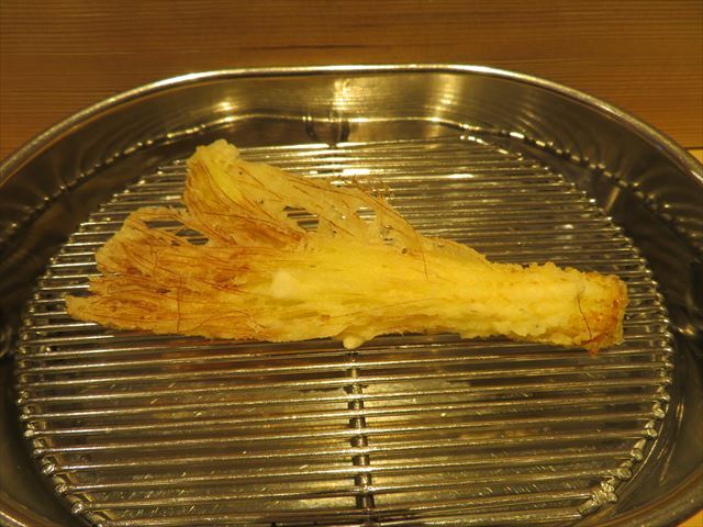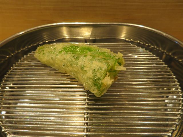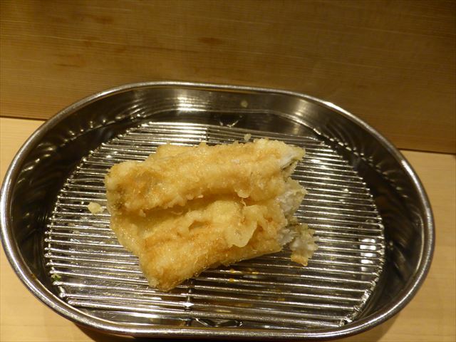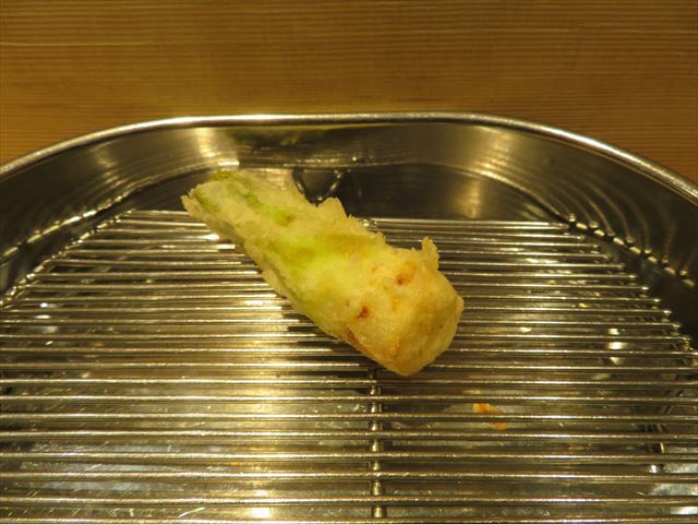 :天麩羅カウンターで定番だが、今回の物は特に良い揚げ具合。